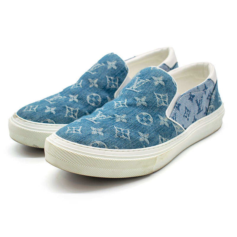 ブルーのモノグラム・デニムを、ホワイトレザーのトリミングとホワイトラバーのアウトソールで引き立てた「トロカデロ・ライン スニーカー」。背面にはゴールドカラーの「Louis Vuitton」シグネチャーをエンボス加工で施し、アクセントを添えました。この上なくしなやかで伸縮性のあるインサートをサイドに備え、着脱しやすいのも魅力です。
